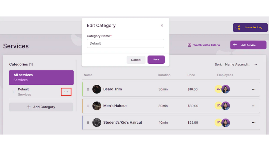 Extras – This tab allows you to enhance your services with additional offerings, known as extras. These extras can act as upsells, providing customers with additional options to enhance their booking experience. For example, a barber might offer “Beard Oil” as an extra that customers can add to their appointment when booking.
