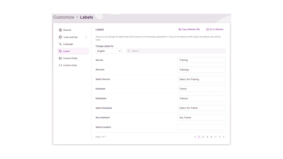 You also have the flexibility to personalize the labels used throughout your booking form. If these fields are left blank, the default labels will be applied. Currently, there are over 50 labels available for translation/modification, and we are continuously adding more. Please feel free to contact us using the support beacon in the bottom right corner if there’s a specific label missing that you require.