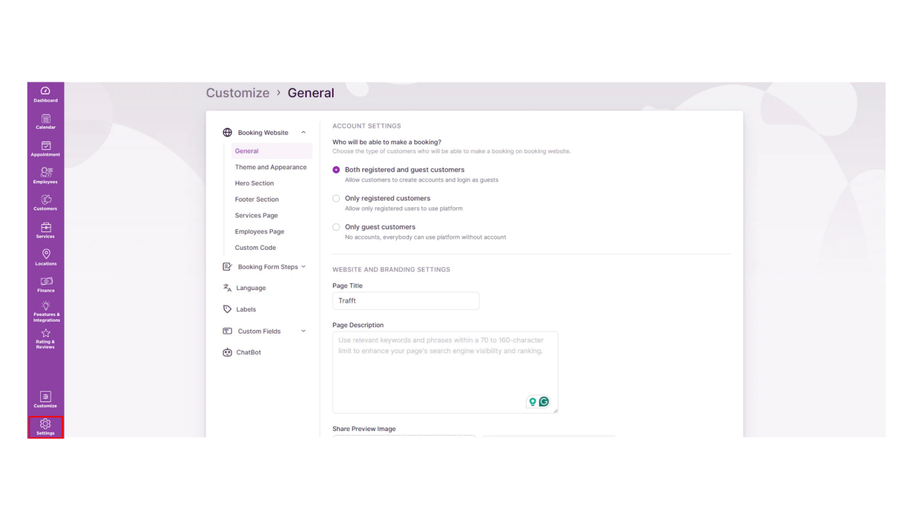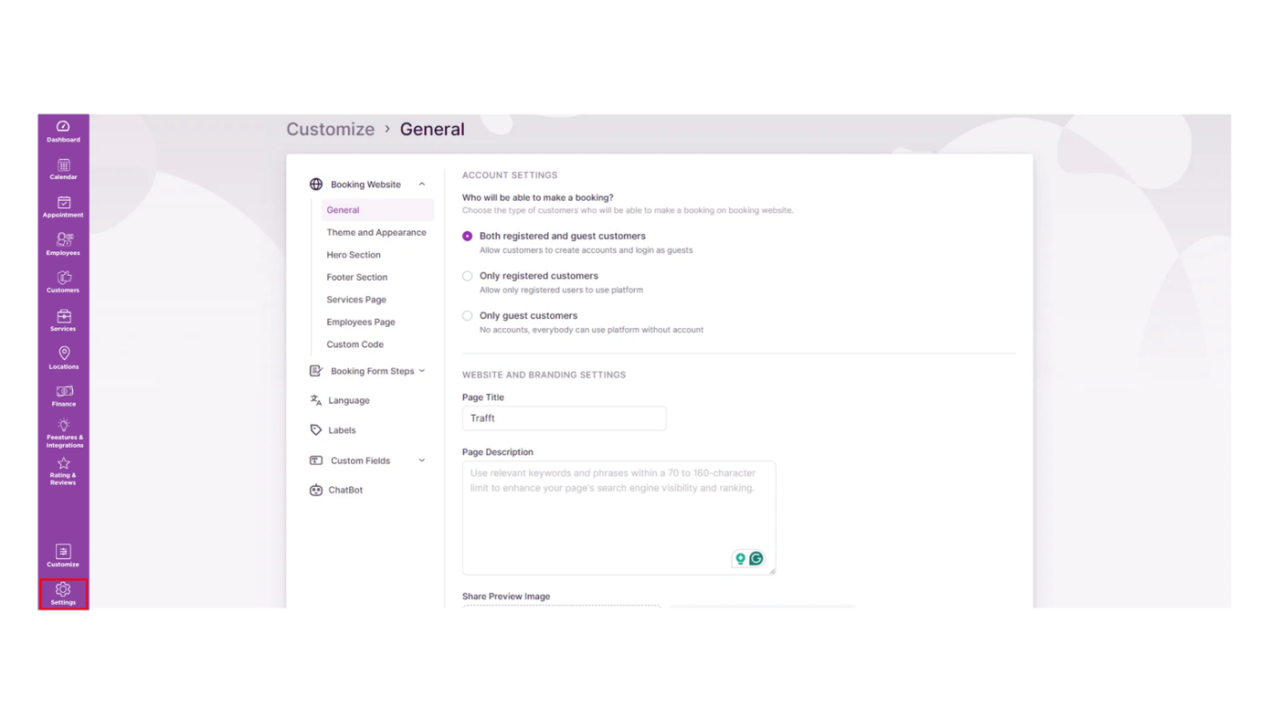 Below, you can further customize these themes to align with your business. You have the following additional options to design your booking website: