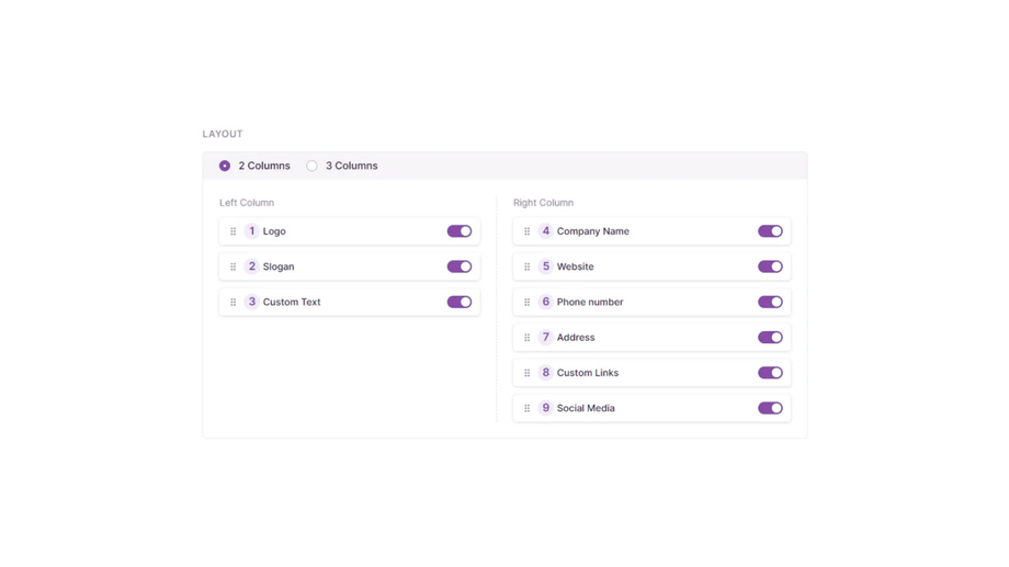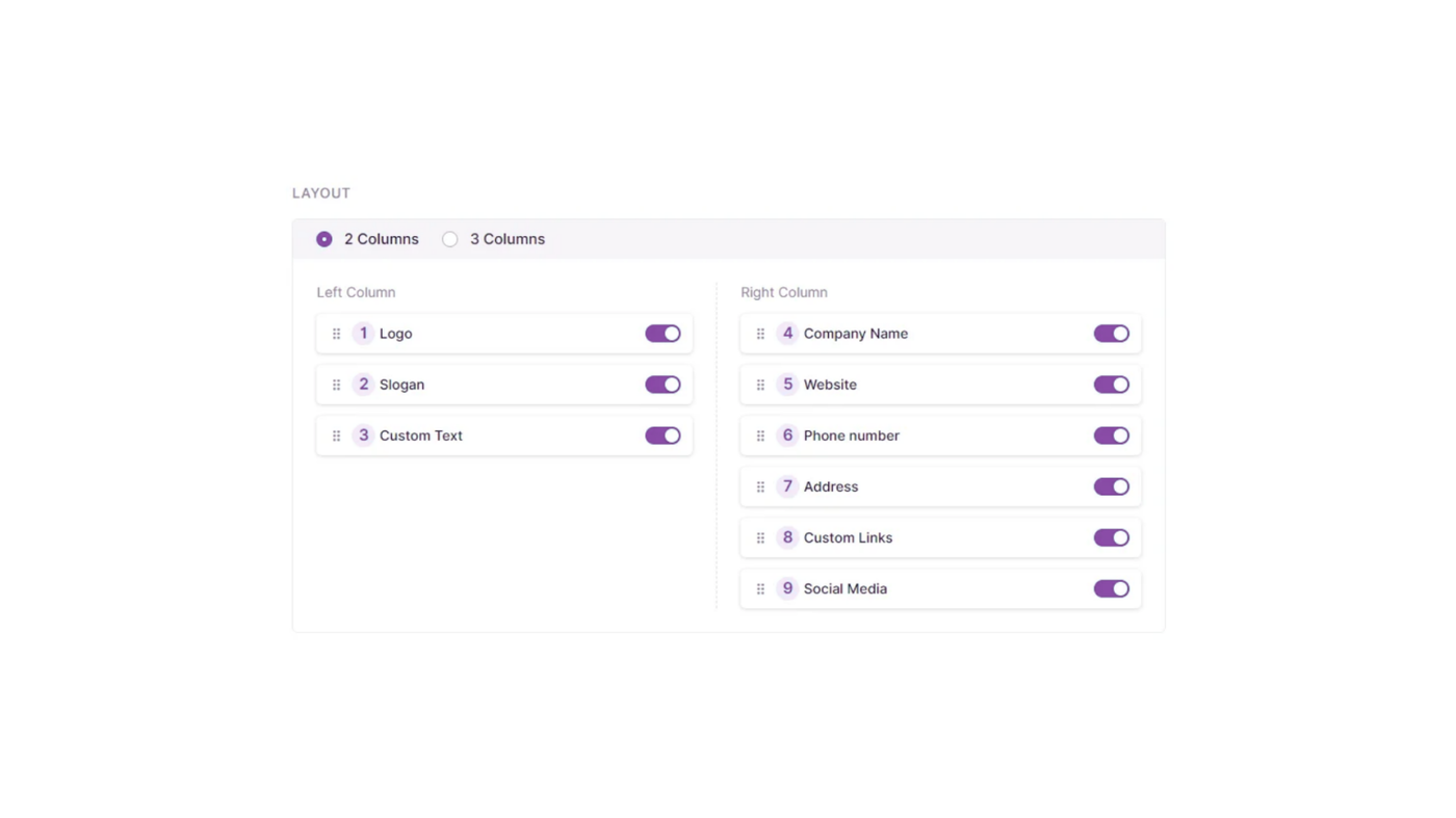 Please Note: The fields available in the Footer Section appear or disappear based on what you’ve enabled in the Footer Layout step. For instance, if you disable the “Custom Text” slider, the section to enter the custom text in the Footer Section will not appear.