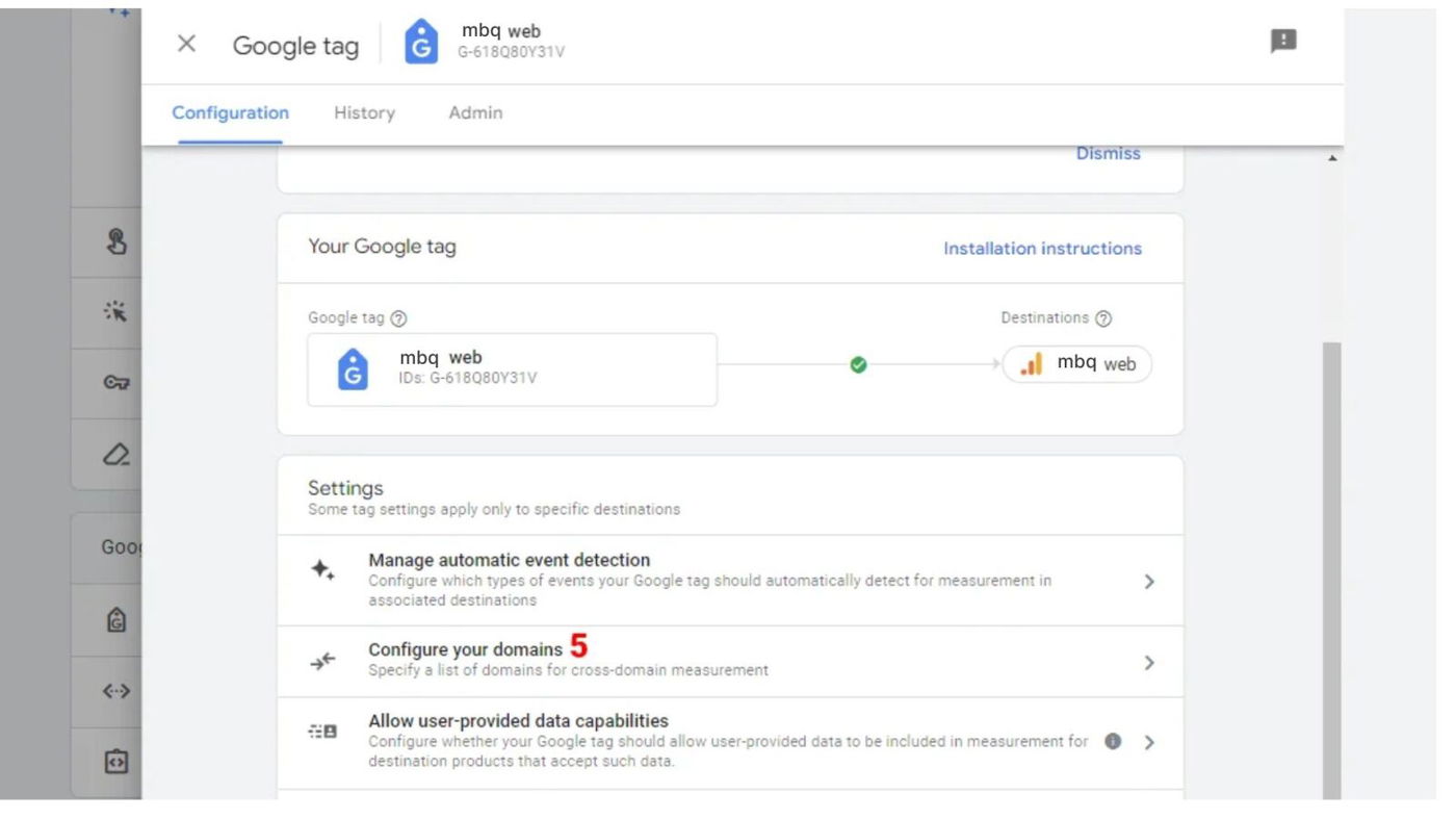 Step 1: Click on the “Admin” (Gear) icon in the bottom left corner -> Data Streams, then select the web data stream.