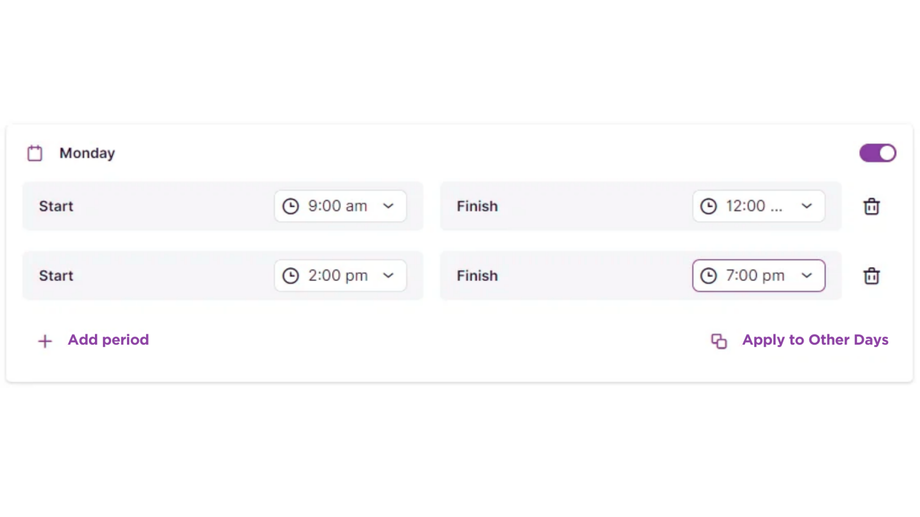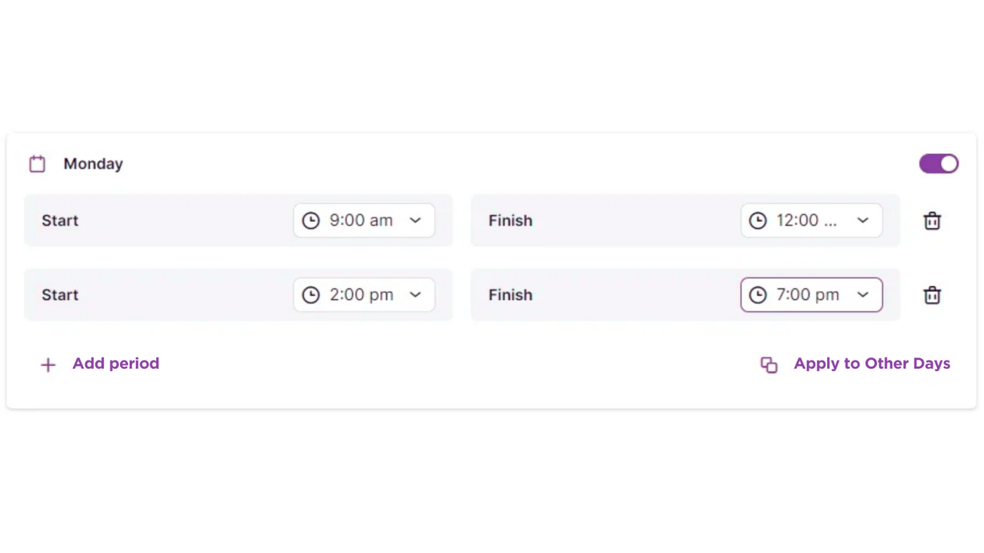 - Apply to Custom Days: Customize hours for specific days based on your business needs.
