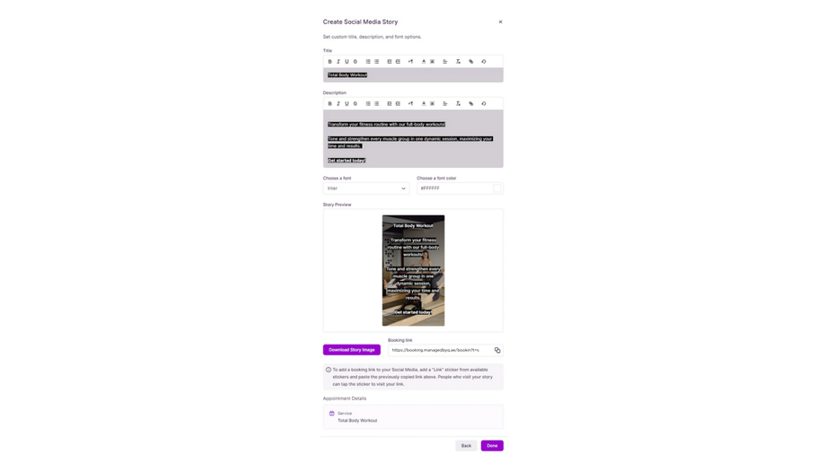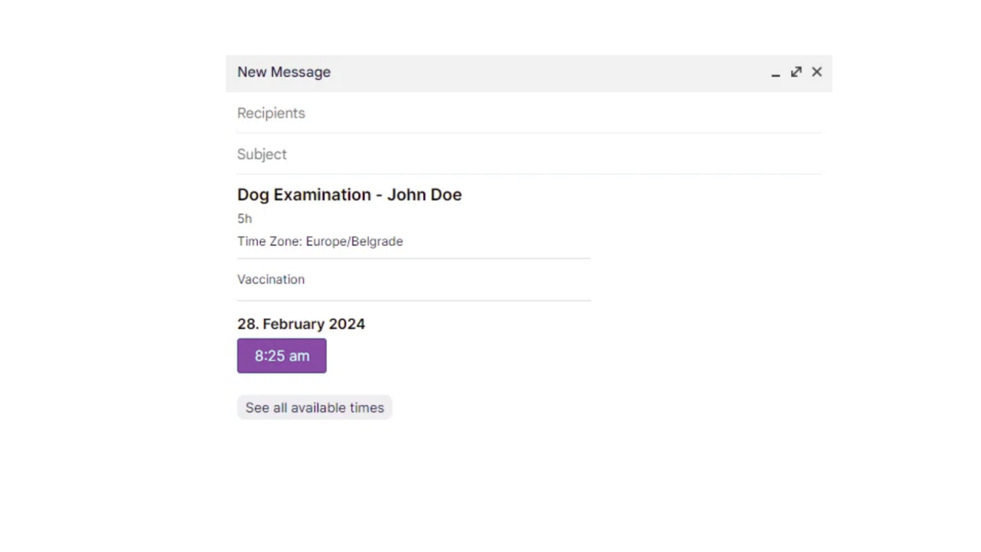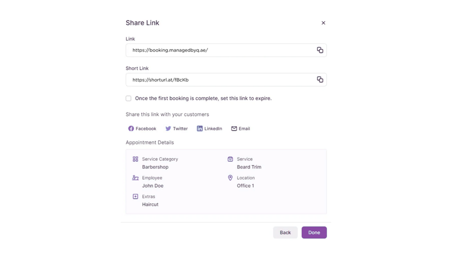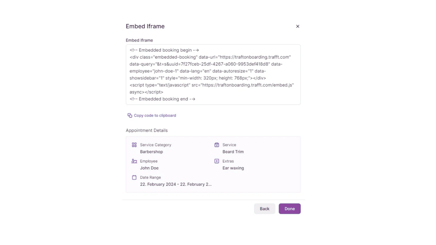 Finally, at the bottom of the modal window, you will see the appointment details that you’re sharing.