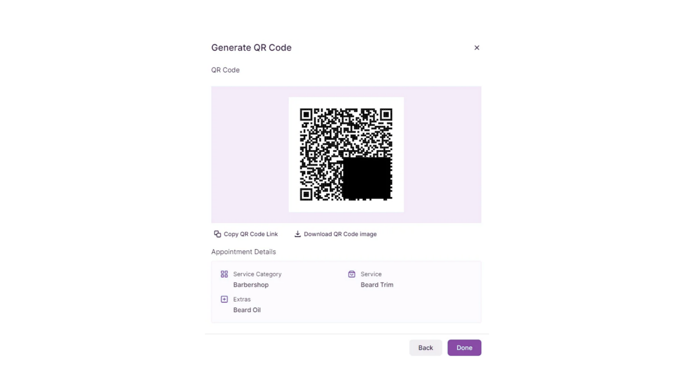 - Get a QR code immediately – this option creates a QR code that functions in the same way as your Booking website, so your customers will go through the entire booking process to make an appointment.
