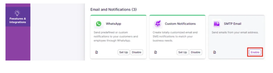 - Locate the “SMTP Email” feature and click on “Enable” to activate it.